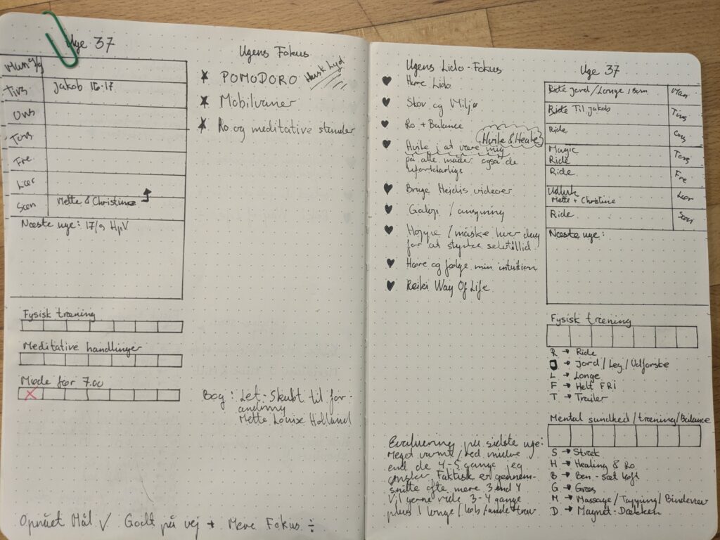 Det, at der er både en ugeplan for Lido og så alt det “andet”, gør det nemt overskue hvornår jeg har redet og hvad vi har lavet og jeg kan også genopdage fokuspunkter som jeg er sprunget for hurtigt hen over..