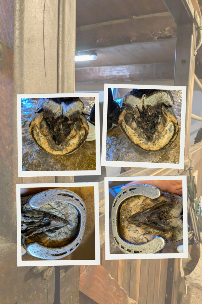 Efter anbefaling fra As Equisoma (Anita).. fik jeg Red Horse Artimud og Clense hjem og da jeg ikke kunne nå ret meget andet i dag, gav det sig selv at bruge en halv time på at tage det i brug.. godt nok spændt og hold nu fest det er bare “pludselig” så sindssygt tydeligt at strålerne er hårdt angrebet af “noget”.. det er ikke kun kløften mellem ballerne der er let tilgængelig grobund for bakterier og svampe men i udpræget grad også hele strålen på særligt højre bb og venstre fb.. synes selve sålen virker okay fin..skal huske at tage billeder af hovene så jeg kan følge processen!