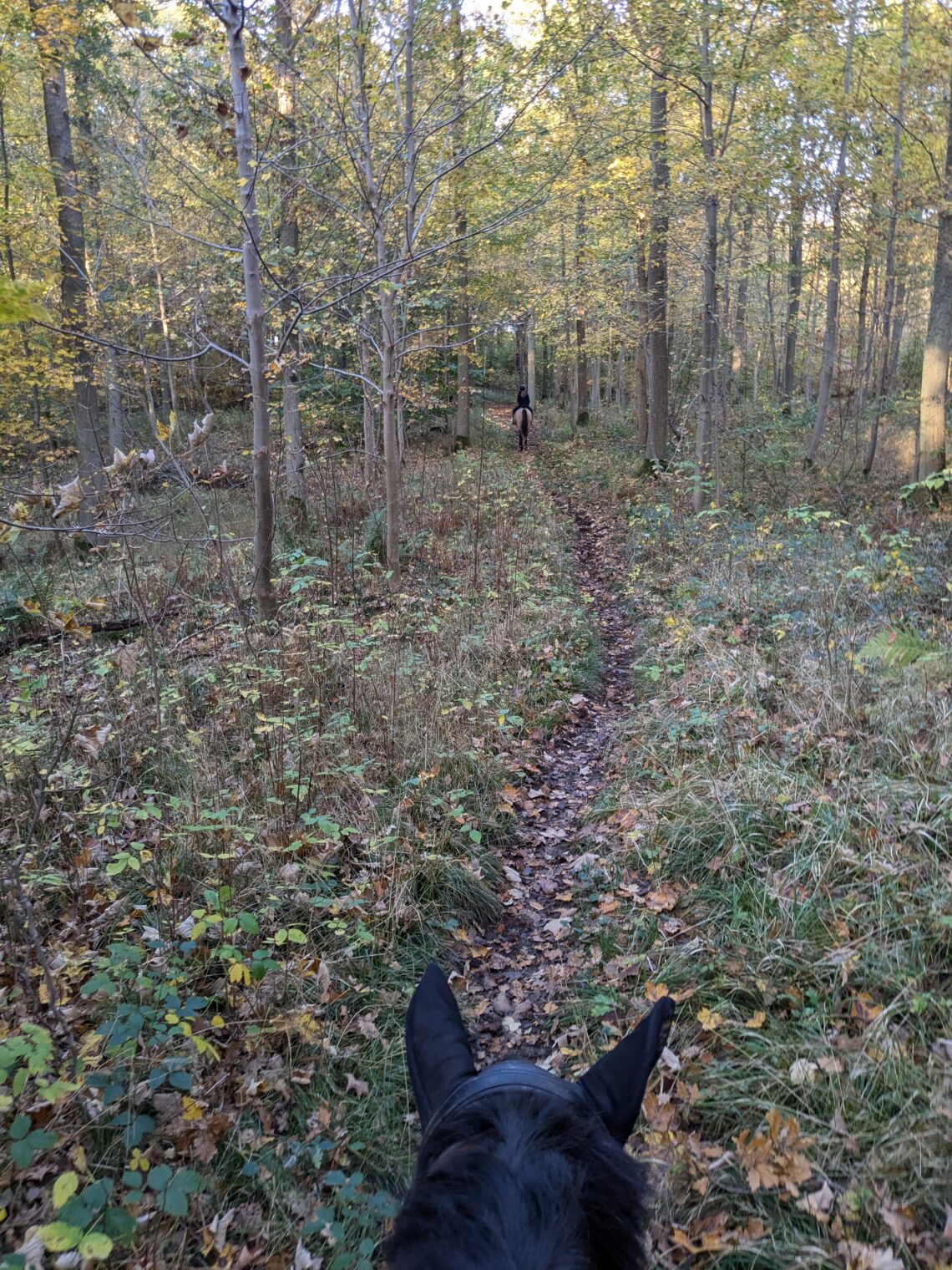 Faktisk er det også lidt en øjenåbner at han også går langsomt i skoven.. han har ikke travlt.. når han er varm svinger han godt igennem og jeg elsker når vi når dertil.. men mine tanker går stadig i retning af respekt for starten/opvarmningen og så måske at ride en smule længere når han er varm en gang imellem, nu hvor hans form bliver bedre!