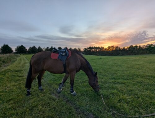 ..tænk at kunne galopere og faktisk også arbejde lidt i galoppen.. for filan en fed tur.. banen var kørt og var nærmest tør.. har total optur og kunne ikke andet end rose og rose.. fik lavet en smule spiral, kontragalop og et enkelt fantastisk anspring fra parade.. Havde tænkt at opvarme med god skridt og fremdrift, så da ideen om at snyde sig til en lille traver på marken poppede op i mit hoved, travede vi et lille stykke og så røg hovedet i græsset som belønning.. gjorde det et par gange, men sluttede med skridt.. tænkte det godt kunne blive eksplosivt hvis han tænkte vi hver gang fra nu af skal afsti afsted!