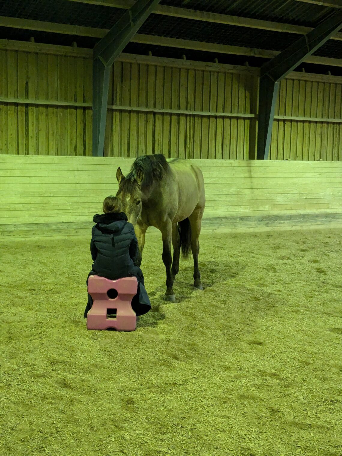 Så december-challenge omfatter massage for halen i stalden (plus ude under træning når det kan lade sig gøre), arbejde hen imod bidløs og cordeo i ridehuset og tempovekslinger i massevis på banen!