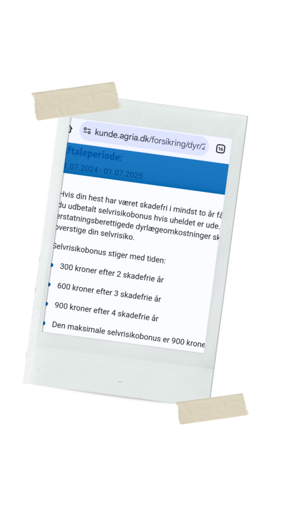 Lido bliver 16 år 14. Maj og var lige inde og tjekke forsikring og tolker det desværre som om den stiger, men også som om jeg valgte helt rigtige forsikring da jeg valgte Agria fordi de fortsætter med at dække som normalt så han har en sygeforsikring så længe han lever.. desuden faldt jeg over en info om en selvrisikobonus;