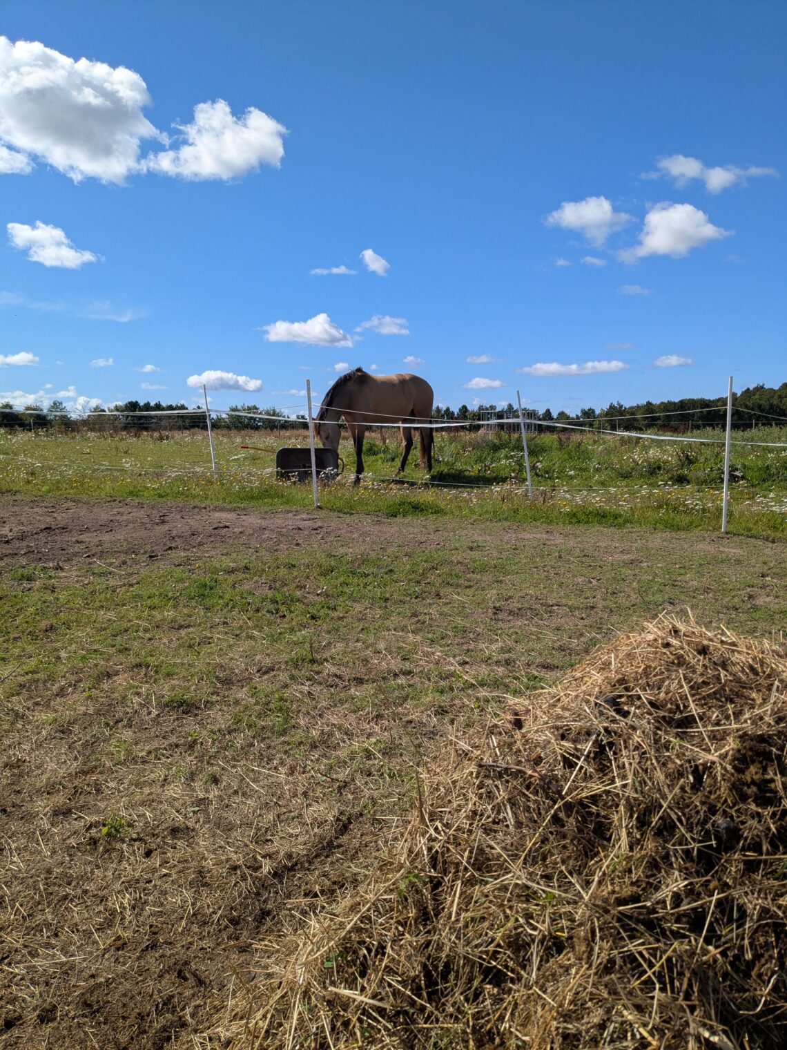 ..med fuldt fokus på motivation.. skridtede ned mod vejen og travede ind over marken for så at græsse oppe ved bakken.. han hostede et par start-host.. har tænk at fordi jeg køber både Pavo Topsport og St. Hippolyt NaturMusli, så ville jeg skære ned i tilskud (mucolyt og equihoof, men beholde glucosamin).. og når jeg så høre ham hoste nu her tænker jeg det er okay efter over et år med mucolyt at tjekke om der er forskel.. havde måske troet at der var mere forskel og at der ingen host ville være efter han også har fået vindue.. nå men holder ved glucosamin og så kan det være jeg også skære lidt ned i hvilken mash jeg bruger når han er luksusdækket ind på kraftfoder.. pt har jeg brugt Urtefarms Green herbalmash (landede alligevel på at fortsætte med den da den er bedst og de andre interessante ikke væsentligt billigere).. faktisk har de også en til før arbejde som måske vil være særlig god til Magic der ikke altid kommer ind i boksen og får noget før træning..