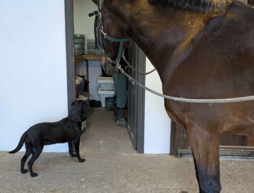 Lidt underligt med host i denne uge.. de plejer at komme i starten af traven og normalt mest lige efter hviledage.. i denne uge var der meget vendt op og ned.. der var ingen efter de to hvile dage, men de kom så den ene gang da han græssede og også et enkelt inde i træningen…hm.. må huske at bede dyrlægen lytte når hun kommer og tager blodprøven for Ppid!